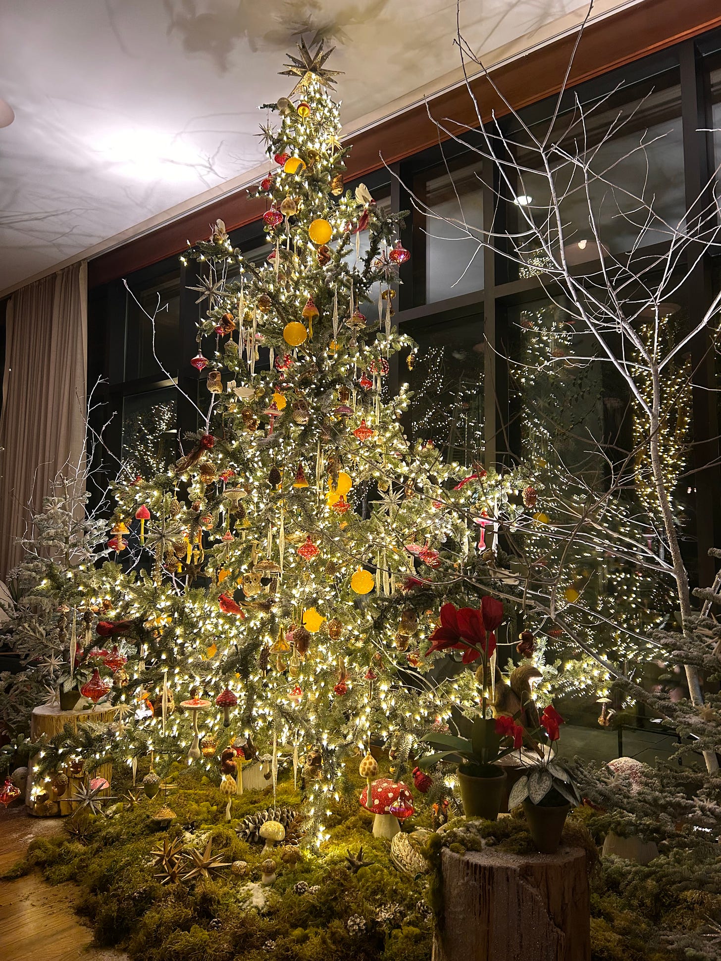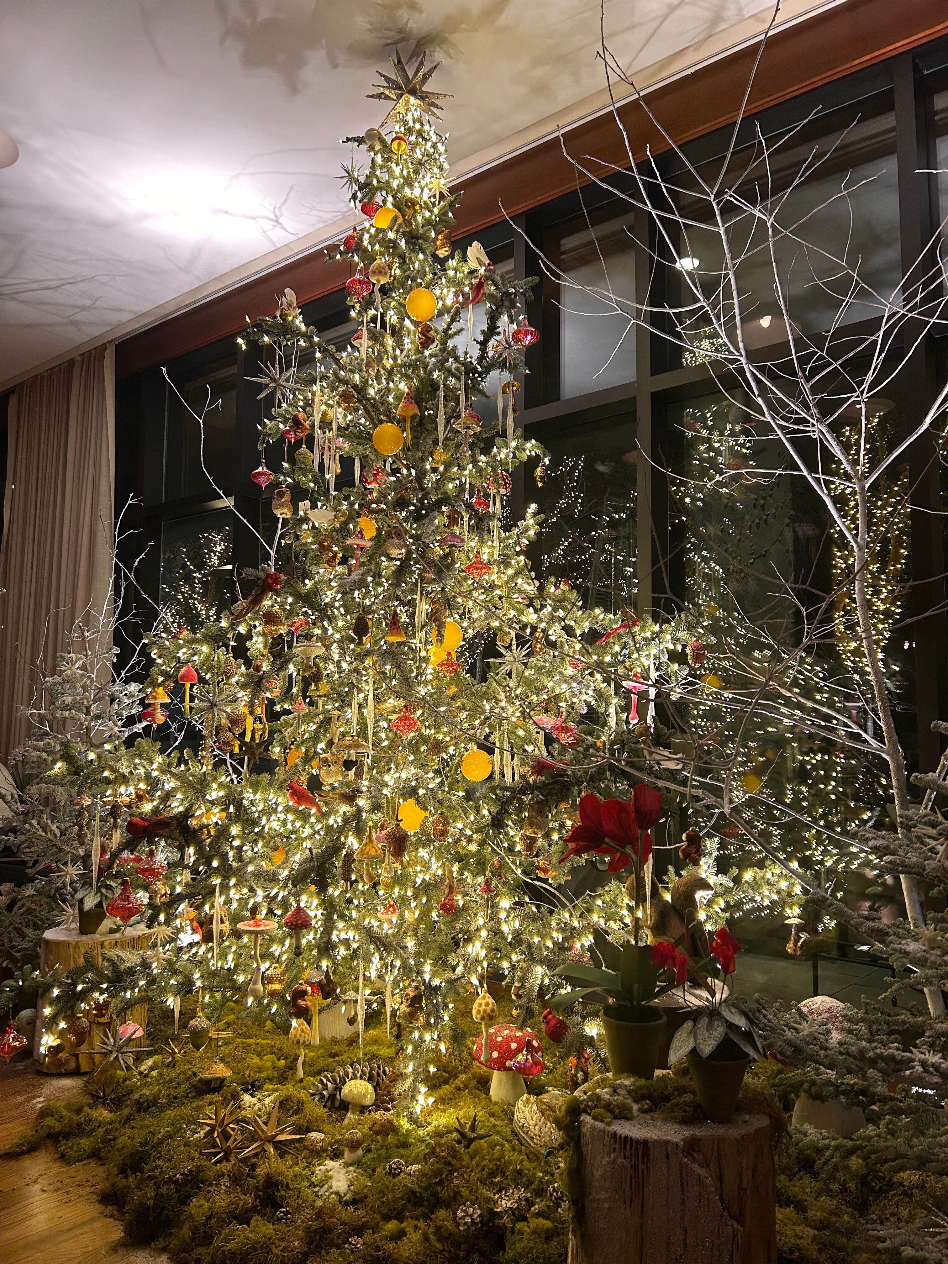 Absolutely gorgeous display, but aren’t our customs strange? Chop down a thriving tree; decorate it with fake forest creatures, ornamental balls, and lights; take photos, throw out dying tree…