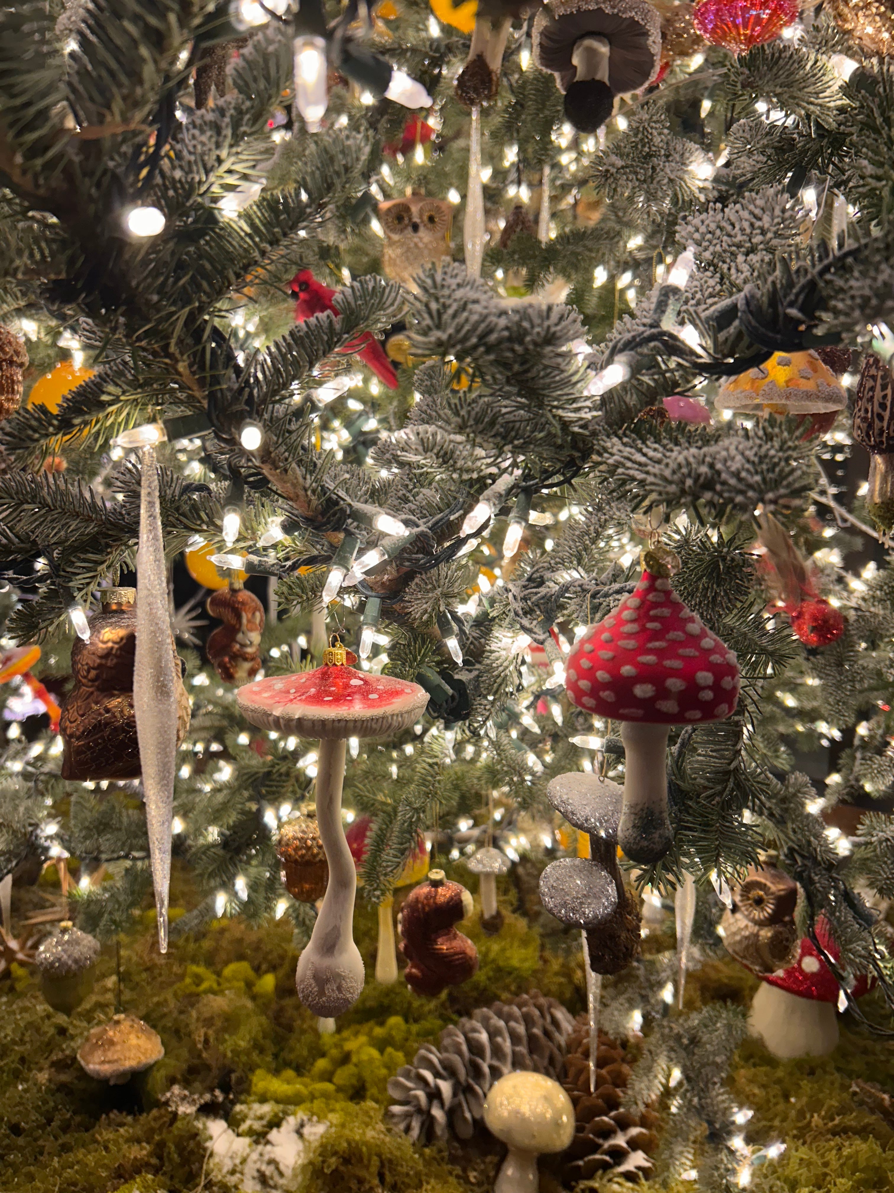 They chopped you down and dressed you up in fake fungal shimmers and ornamental birds.